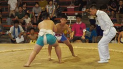 7月30日(日)に津幡常設相撲場にて行われる大会に向け,3日(月)から,週3回(月,水,金。17:30~19:00)の練習を開始しました。2回目のこの日は,初めて外(笠野小学校相撲場)での練習ができました。選手は,4~6年生男子全員です。児童数の関係で,毎年,該当児童全員が参加し,力を合わせてがんばっています。今年の選手は11名。初めての4年生が5名もいるので,5・6年生の先輩たち,自分のことより,まずは彼らへの支援に力が入っていました。指導者は,森山時夫さん。これまでもずっと,児童たちを指導してくれた方です。今年もよろしくお願いいたします。