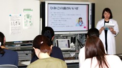 給食後,保護者はパソコン室で,津幡中学校の栄養職員である宮田先生に,栄養指導を受けました。パワーポイントによるとても分かりやすいお話で,参考になることばかりでした。学校給食は,1日3食とした場合で,全食事の17%。残りの83%が家庭での食事ということから,家庭での食事の大切さも改めて分かりました。「ひみこの歯がいいぜ」(噛む8大効用)についても教えていただきました。宮田先生,ありがとうございました。