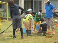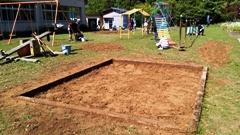 一部保護者の方々には,「砂場復活プロジェクト」に参加していただきました。掘り出した土は中庭の凹凸を均(なら)すことに使い,一石二鳥でした。作業は,予定した9時30分までたっぷりかかり,ようやく終わりました。参加して下さった保護者の皆さん,ありがとうございました。児童の皆さんも,本当にありがとう。砂場に砂が入ったら,たっぷり遊んでくださいね。