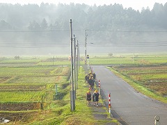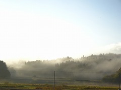 ↑ 今朝の笠野は、水墨画のような濃淡のある朝靄がかかています。