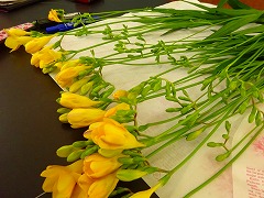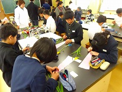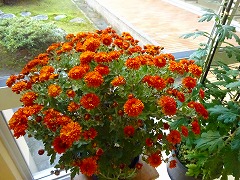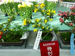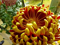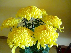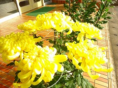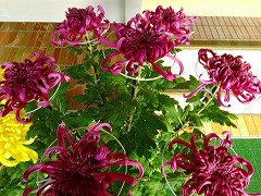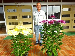 ↑ 地域の菊づくりの名人の方が、明日の公開発表会の激励に、笠野小学校に菊を届けてくださいました。黄色いのは、「金山」、赤いのは「国華卒寿啓」と命名されていました。ご来校の際には、ぜひ鑑賞してください。