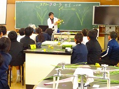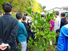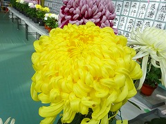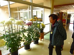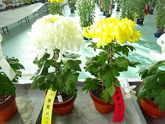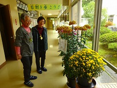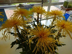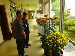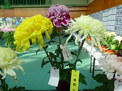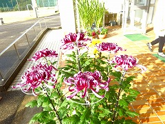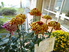 ↑ 本校にも菊を飾ってくださった地域の菊名人さんの作品がずらりと並んでいました。立派な菊に感動しました。