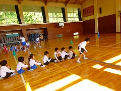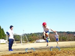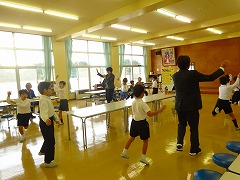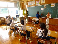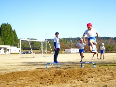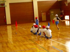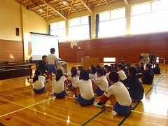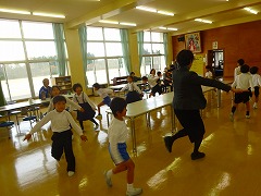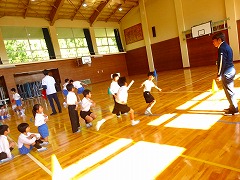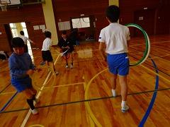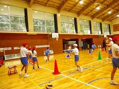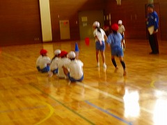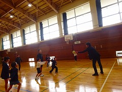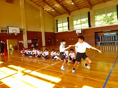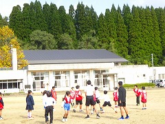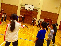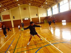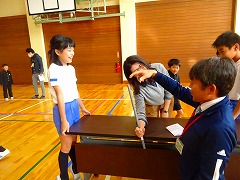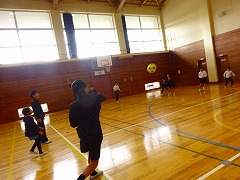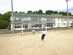 ↑ 3,4年生体育 ネット型ゲームで、ソフトバレーボールに挑戦です。チームワークを大切にして、なんとか相手チームにボールが入るように頑張っていました。