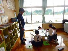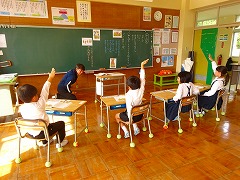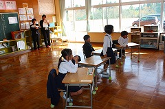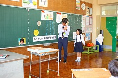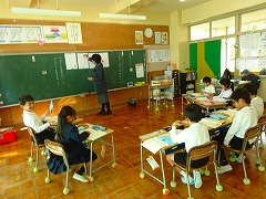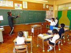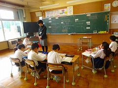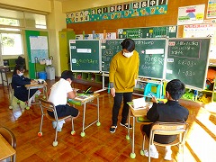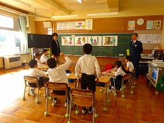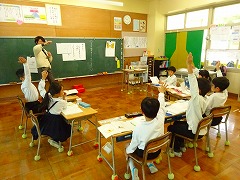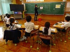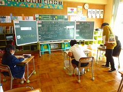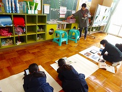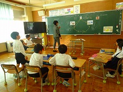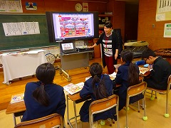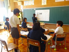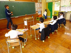 ↑ こちらは5.6年外国語活動です。5年生はWhere is the mouse ? It's on the desk.