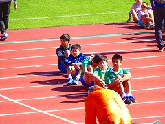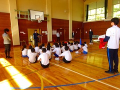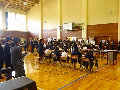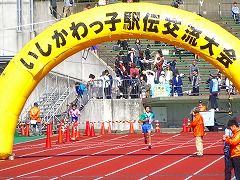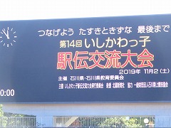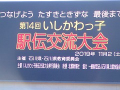 ↓ 大勢の中でも物おじせず、笠野っ子らしく、しっかりとした姿勢で、話を聞いています。北は珠洲市から、南は加賀市に至るまで、男子は97校、女子は93校がら各学校の代表選手が一堂に会し、それぞれのたすきをつなぎました。