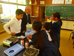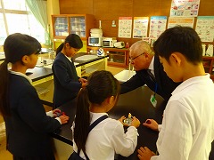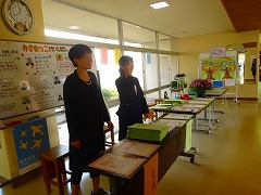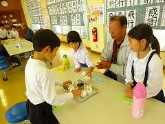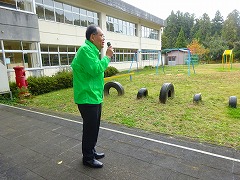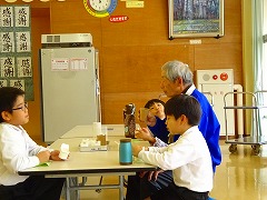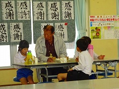 ↑ 卒業生が、入学したときの校長先生、中田 一朗 先生です。大きくなったねと、成長をたいへん喜んでくださいました。