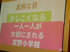 ↑ 私からは、笠野っ子の「真剣な目」についてお話をしました。授業中の笠野っ子の眼差しが素晴らしいのです。