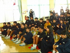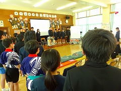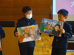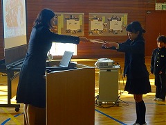 ↑ PTA会長様から、卒業記念品の9名の名前入りの写真フレームが贈られました。卒業生にありがとうございました。