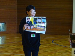 ↑ 講師の先生は、金沢医科大学の先生です。子供が興味を引く分かりやすい実験をしながら、睡眠の重要性について教えていただきました。睡眠が十分でないと、集中して見たり記憶に残したりすることがうまくいきません。また、反射神経も鈍くなります。棒を落としてどこをキャッチするかによって元気度が分かるという体験はとても分かりやすかったです。