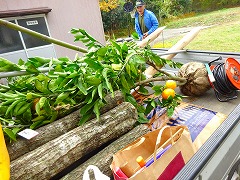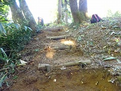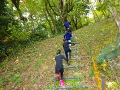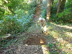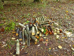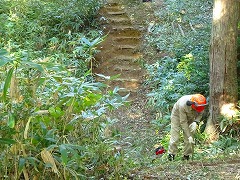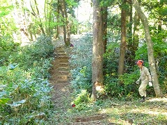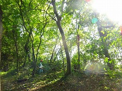 ↑ 笠野の森の整備がスタートしています。今日は、階段が朽ちていたので、間伐した気を用いて、歩きやすいように階段を整備してくださいました。下草が刈られ、間伐され、笠野の森の木漏れ日がさらに気持ちよくなりました。