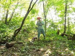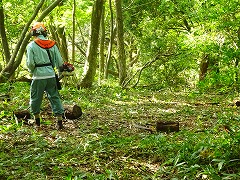 ↓ 「石川県平和の緑づくり事業」の一環として、本日は笠野の森の藪草刈りや危険樹木の伐採作業を行いました。笠野の森の整備を進めていきます。