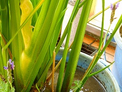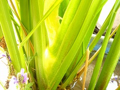 ↓ 学校の玄関のまこもが実っています。総合的な学習の一環として、まこも料理に挑戦するそうです。津幡ブランドまこもをおいしくいただく予定です。