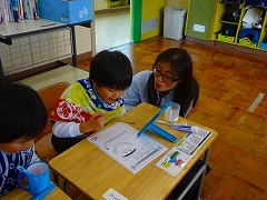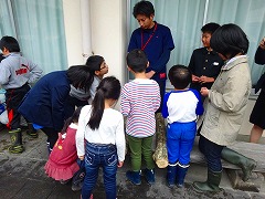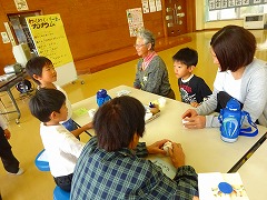 ↓ 親子歯磨き教室 歯科衛生士さんと町の保健師さんに、歯の健康を維持する方法と歯の磨き方を教わりました。