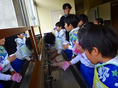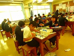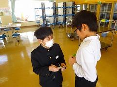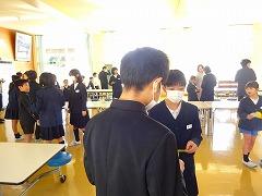 ↑今年度最後の給食です。ランチルームでは、3年生以上が背中合わせで、1.2年生は各教室で食べています。食事中による感染拡大を防止するためです。