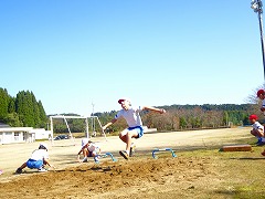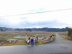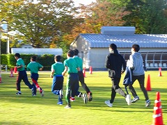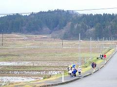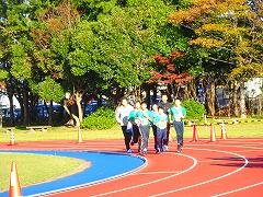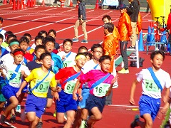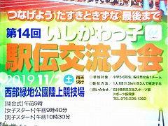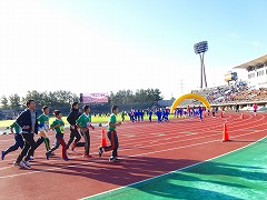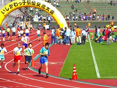 ↑ 第14回いしかわっ子駅伝大会に出場しました。笠野っ子はどの競技でも常に全員が選手です。駅伝交流大会も、6年男子全員でたすきをつなぎました。