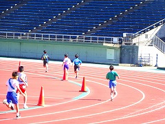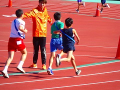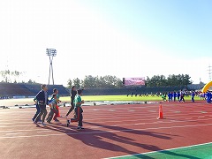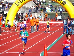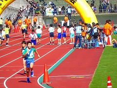 ↑ 1500mを走りきって、戻ってきました。ゴール!笠野小の5人で1500m×5人の駅伝を見事に全力で走りぬきました。
