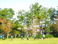 7時30分には、ウォーミングアップでコースの下見と体ならしをしました。
