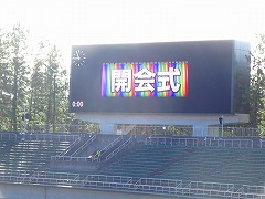 ↑ 開会式です 真っ青に晴れ渡り、雲は一筋の飛行機雲だけです。