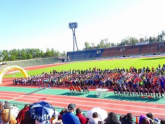 ↑ 閉会式、笠野小、整列完了 NO.1 お疲れさまでした。自己ベストタイム、チームのタイムも昨年より縮まり、順位もUP、チームの絆と信頼感は一生の宝物となることでしょう。努力は無駄にならない、これからの人生に生かしていきましょう。応援ありがとうございました。
