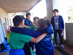 ↓ 「チームのために各自が全力を出す」円陣を組んで信頼の絆を誓い、スタート地点に立ちました。