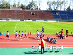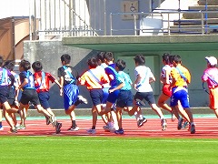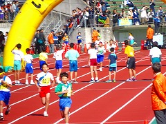 ↓ スタートの合図で各学校の代表97名が一斉に第1走者が駆けだしました。