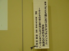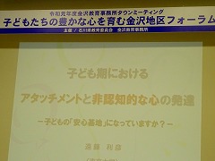 ↑講演では、「子供は何歳になっても、困ったり、つらいことがあったりしたら戻って来る場所があるという見通しを持たせるアタッチメントが必要なのです」という、安心基地の必要性を数々の実証実験から分かりやすく教えていただきました。PTA会長さんと一緒にお聞きでき、大変有意義な時間を過ごすことができました。