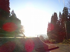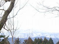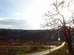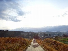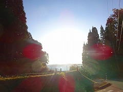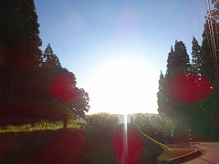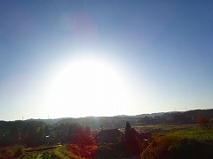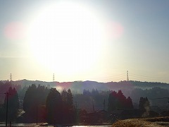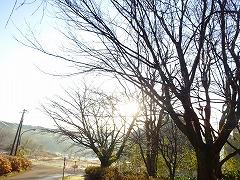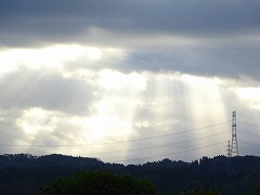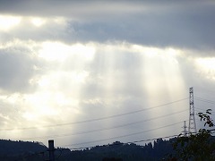 ↑ 本日は立冬、空も幾分冬空です。でも、朝日の光の筋が笠野を照らしていました。