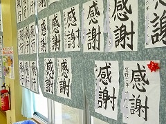 ↑ 5,6年習字 6年生の言葉は「旅立ちの朝」卒業式当日の気持ちを思い浮かべて、心を込めて書きました。