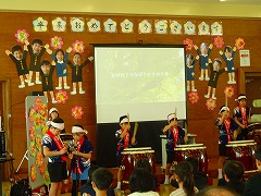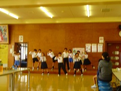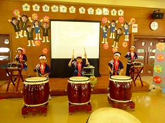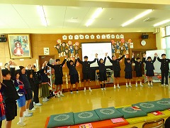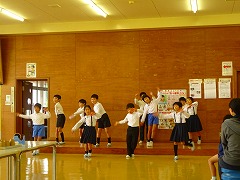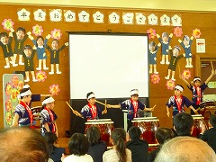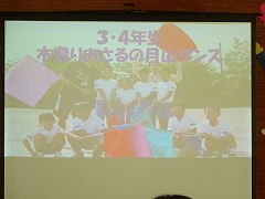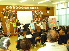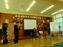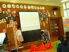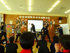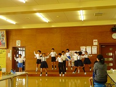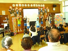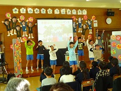 ↑ 各学年ごとの出し物です。トップバッターは、3.4年生による「木登りおさるの月山ダンス」リズムにのって、速いテンポでダンスを踊りました。「木登り」「おサル」の「月」「山」の意味が、やっと分かりました。よく工夫した振り付けで、元気いっぱい踊り、会場中を湧かせてくれました。会場の飾りつけも心がこもっていて素敵でした。