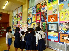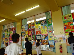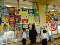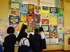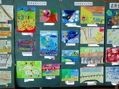↑ 河北郡市の中学年の図画作品展です。ダイナミックな構図、工夫した技法、みんなで鑑賞しました。笠野小からも2名の作品が展示されています。丁寧な描き方、工夫した技法、子供ならではの表情で、心が温かくなります。