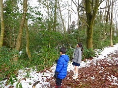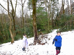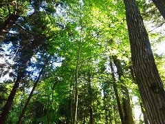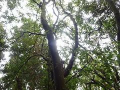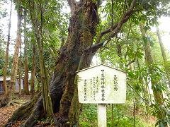 ↑ 大熊区の甲斐崎神社を案内していただきました。石川県文化財(天然記念物)で有名なアカガシの原生林があり、歴史を感じさせる巨木の数々に深く感動しました。