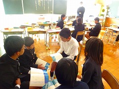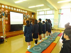 ↑ 教室では、卒業アルバムに寄せ書きをして、担任手作りの思い出のDVDを視聴し、担任の言葉を伝えていました。9人の友情の絆はいつまでも続きます。