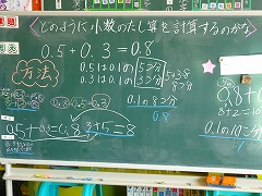 ↓ 3年生は小数の計算の意味を考えました。それぞれが自分の考えをしっかり説明し、納得できました。