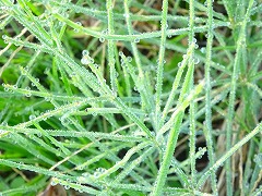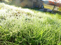 ↑低いところに朝霧がかかっています。朝露もみずみずしいです。気温が低くなると、これが霜になるのでしょう。11月は霜月、初霜はいつごろでしょうか。