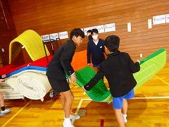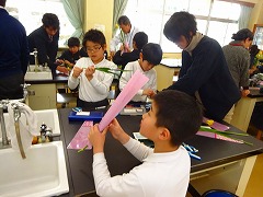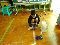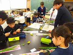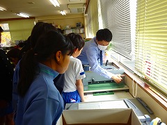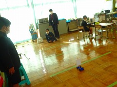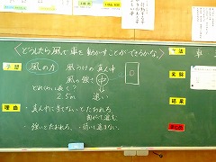 ↑ 3年理科 風の力で動く車の実験です。どこにどのような風を当てたら遠くまで進むか実験をしました。予想は当たったでしょうか。