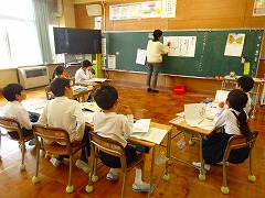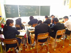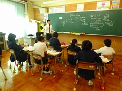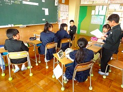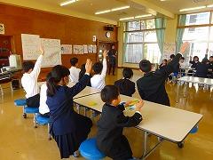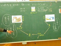 ↑ 2年道徳 生命のつながりについて話し合いました。生き物はみなつながっている、生命のつながりを意識して食事をすると、生命をいただいているということを強く感じることができると話し合いました。