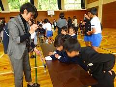 ↑ PTAの皆様には、たくさん助けていただきました。駐車場の誘導や受付、そして後片付けに至るまで教職員を支えていただき、感謝の気持ちでいっぱいです。今大会での学びを、笠野っ子のよりよい成長の指導に生かしていきたいと思います。今後ともどうぞよろしくお願いいたします。
