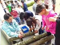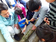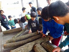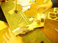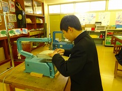 ↑ 3,4年図工 木工作をしています。木の素材を楽しみながら想像を膨らませて作業を進めていました。