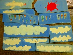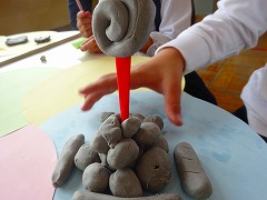 ↑ 1年 図工 ケーキ屋さんのケーキをはじめ、いろいろ作りました。