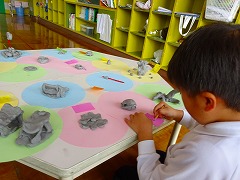 ↓ 2年生はかけ算を作っていました。今日は5の段です。