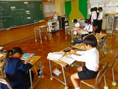 ↓ 今日は「読む読むデー」長休みにみんなで本を借りました。2学期の目標冊数に近づいているでしょうか。「毎日15分でも読書をすることは、心の安定にとてもいいのですよ」と公民館の主事さんが話してくださいました。実践してみましょう。