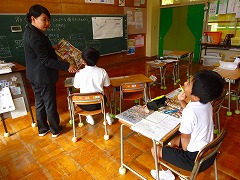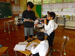 ↓ 朗読の学習です。どのように読むと、伝えたい気持ちが伝わるか、理由も考えたことで、自分自身も聞いている児童も深まりました。