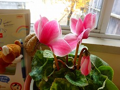↑ 今日の給食は「かみかみメニュー」でした。このシクラメンは、津幡高校さんからいただいたものです。冬の訪れを感じますね。
