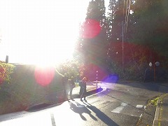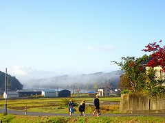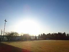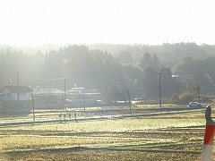 ↑ 学校保健委員会では、朝日を浴びて歩くこと、これがセロトニン分泌に効果があると学びました。朝日を浴びていることを意識して歩くとさらに効果がアップします。今朝は、笠野川のあたりに朝霧が立ち、素晴らしい光景でした。日によって朝霧の立ち方が異なります。自然現象の不思議さを感じます。