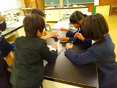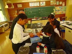 ↓ 4年生 理科 液体は温度によって体積は変わるか、実験方法を考え実験しました。氷とお湯につけたときでは、体積は大きく変化しました。