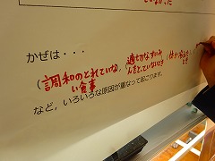 集中力を高め、記憶力を働かせ、反応をよくするためには、成長ホルモンがしっかり出るように、暗くして眠ること、朝日を浴びること、リズミカルな運動をすること、朝ごはんにはセロトニンを分泌しやすい豆腐や納豆等バランスのよい食事をとることを教えていただきました。