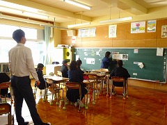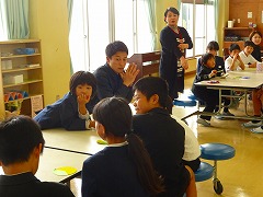 ↑ 6年生との「話そうタイム」は今回が最終となります。〈1年のまとめにどんなことを振り返るとよいかな〉「できるようになったこと」それとも「できなかったこと」それぞれが理由をしっかりつけて話し合いました。どの意見にも、「納得」できる説得力が増してきました。