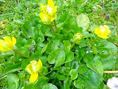 ↓ 足元では、美しいキンポウゲとおおいぬのふぐりが春の訪れを知らせてくれています。林の中からは、うぐいすが「ホーホケキョ、春ですよ」と教えてくれています。
