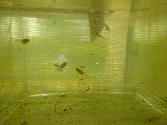 ↑ 次々と熱帯魚のグッピーの赤ちゃんが生まれています。保護者の皆様、飼育されたい方は、お譲りできますので学校までお知らせください。