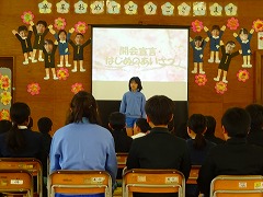 ↑ 開会のあいさつ 堂々とはっきりと話し、会が引き締まりました。